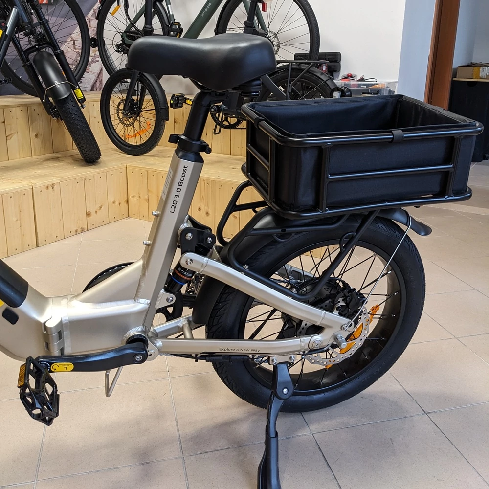 Ez a hátsó kosár nem akar túl nagy lenni, csak pont elég: elnyeli a napi apróságokat, megtartja a formáját, és alkalmazkodik a helyzethez. Egy olyan kiegészítő, ami észrevétlenül teszi kényelmesebbé a bringás mindennapokat.