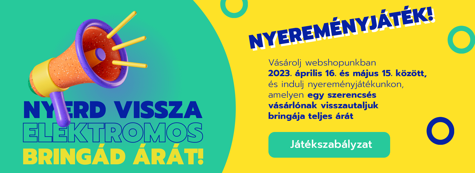 Mit kell tenned, hogy te lehess az? Pofonegyszerű: vásárolj elektromos bringát webshopunkban április 16. és május 15. között, és ha neked kedvez sorsolásunkon a szerencse, visszanyered a bringa árát! A vásárláson kívül nincsen semmilyen teendőd, csak várni a sorsolást. Amennyiben neked kedvez a szerencse, a rendelés során megadott adataidon értesítünk erről.